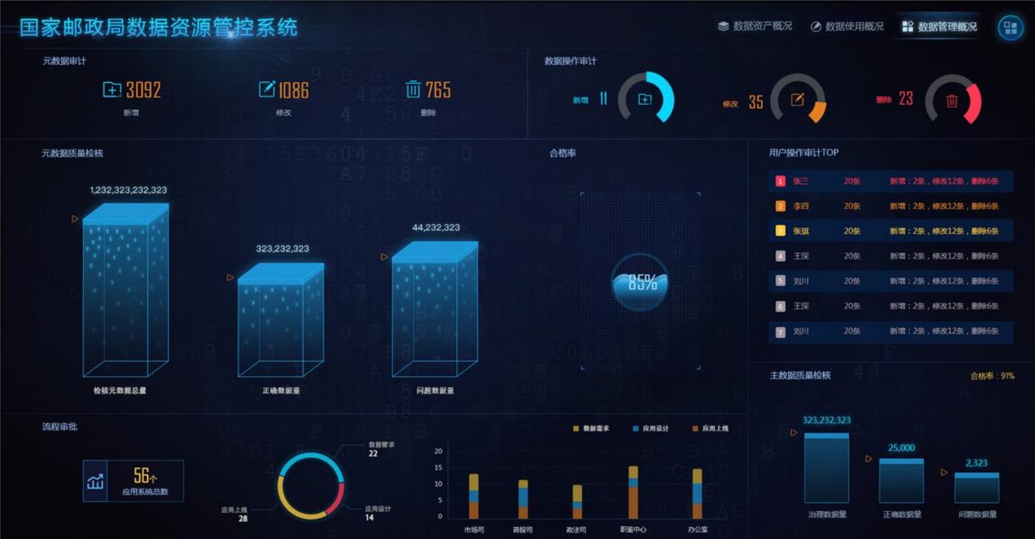 建设数据资源管控系统,包括元数据、数据质量管理和数据审计功能。