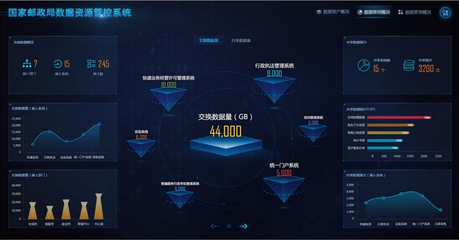 完善数据交换与共享平台接口,实现国家邮政局相关系统之间以及与外部委之间的数据交换。